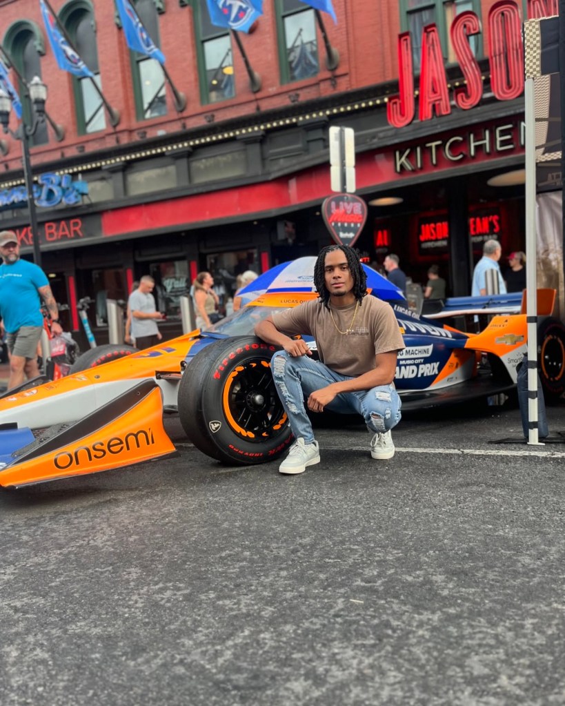 “When we moved to Nashville, Tennessee, my Mom encouraged me to pick back up where I left off, working towards getting tickets to network with drivers and simulator gear, before I tested a Lamborghini in 2023. After progressing with the team I drove for, I knew it was time to ‘spread my wings and fly’ once the opportunity came to a close. That being said, I’m forever grateful for the opportunities provided to me, and I’ve since been on to bigger and better things. I’ve also tested a 1500-power Go-Kart, while continuing to build my brand and connecting with people, working side jobs to make it happen. Some of my jobs consisted of working Football and Soccer games, specifically as a Cashier and doing Concessions. During this time, I was able to upgrade my Simulator, getting Moza equipment and Track Racer RS6, before upgrading to Sim Lab. Since I’m a Brand Ambassador for VRS, they sent me a wheel at no charge.”